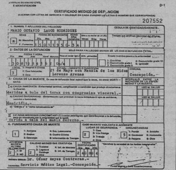 1. Certificados de defunción de Mario Lagos, Luciano Aedo y Nelson Herrera