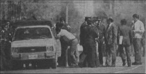 Estando detenidos en el patio de Borgoño, escuchamos que habían empezado a seguir al Nº 1 (que era Palma) y a quien supimos posteriormente que interceptaron por Avenida Kennedy en un auto. También supimos que detuvieron en un paradero a otro del grupo de los tres que están en el Consejo de Guerra y que cerca de donde está ubicado el centro de detención conocido como Capuchinos, detuvieron al tercero.